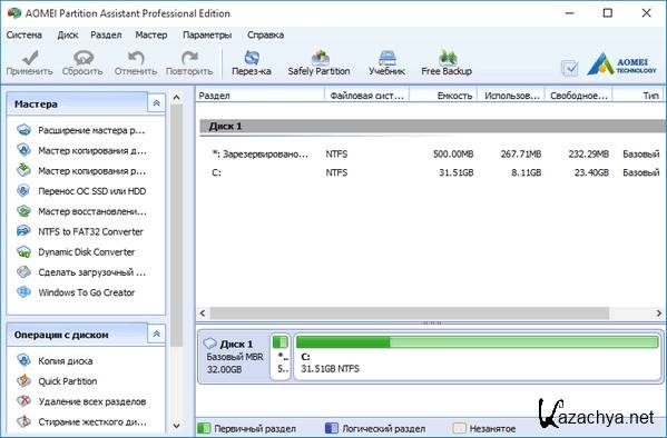 AOMEI Partition Assistant мощная программа для работы с жёстким диском, администрирования разделов для ПК и рабочих станций. Программа ответит на такие вопросы, как: “Как изменить размер раздела или объединить разделы без потери данных? Как увеличить производительность компьютера?”.