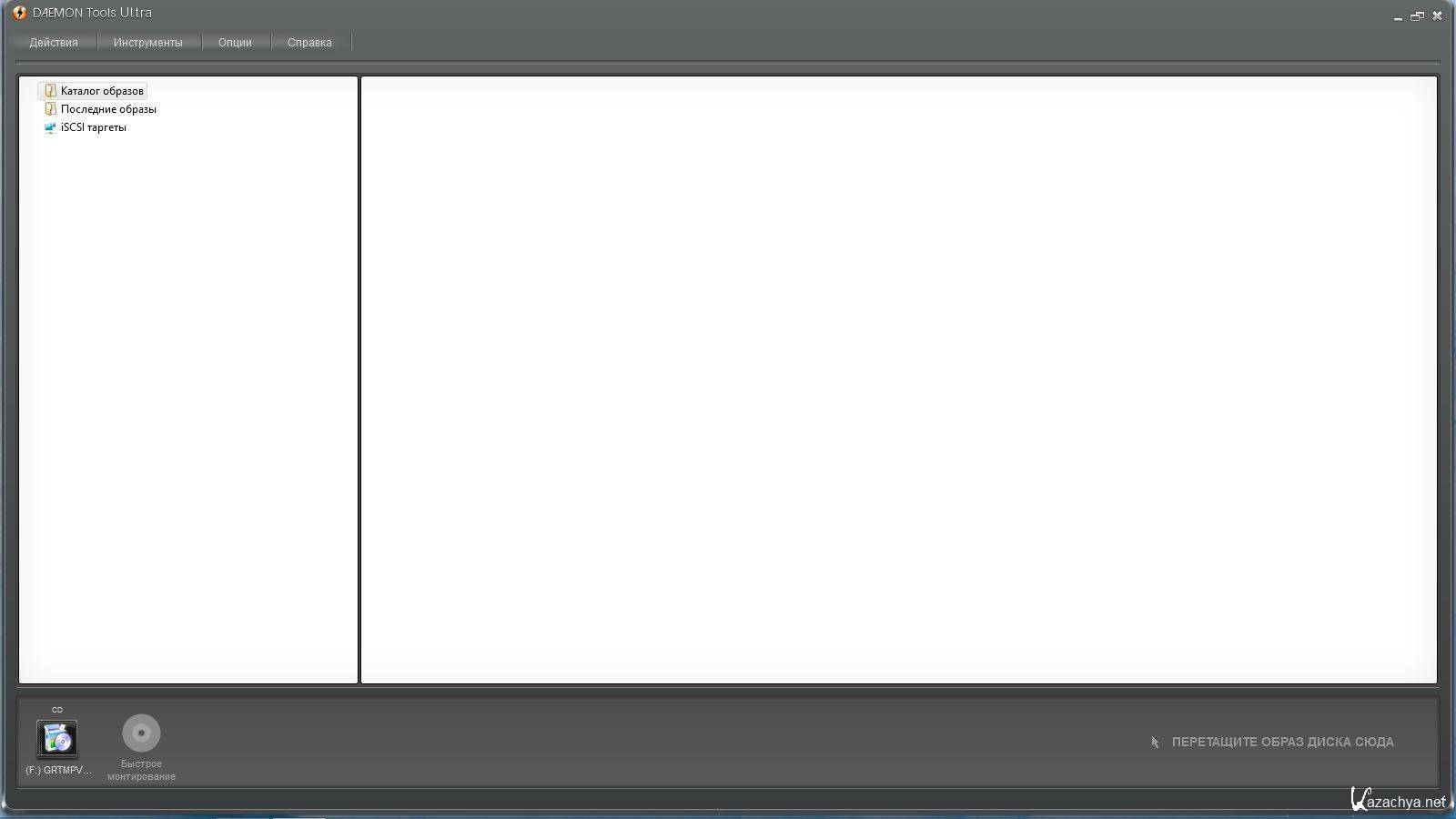 Монтирование *.mdx, *.mds/*.mdf, *.iso, *.b5t, *.b6t, *.bwt, *.ccd, *.cdi, *.bin/*.cue, *.ape/*.cue, *.flac/*.cue, *.nrg, *.isz образов дисков в виртуальный привод