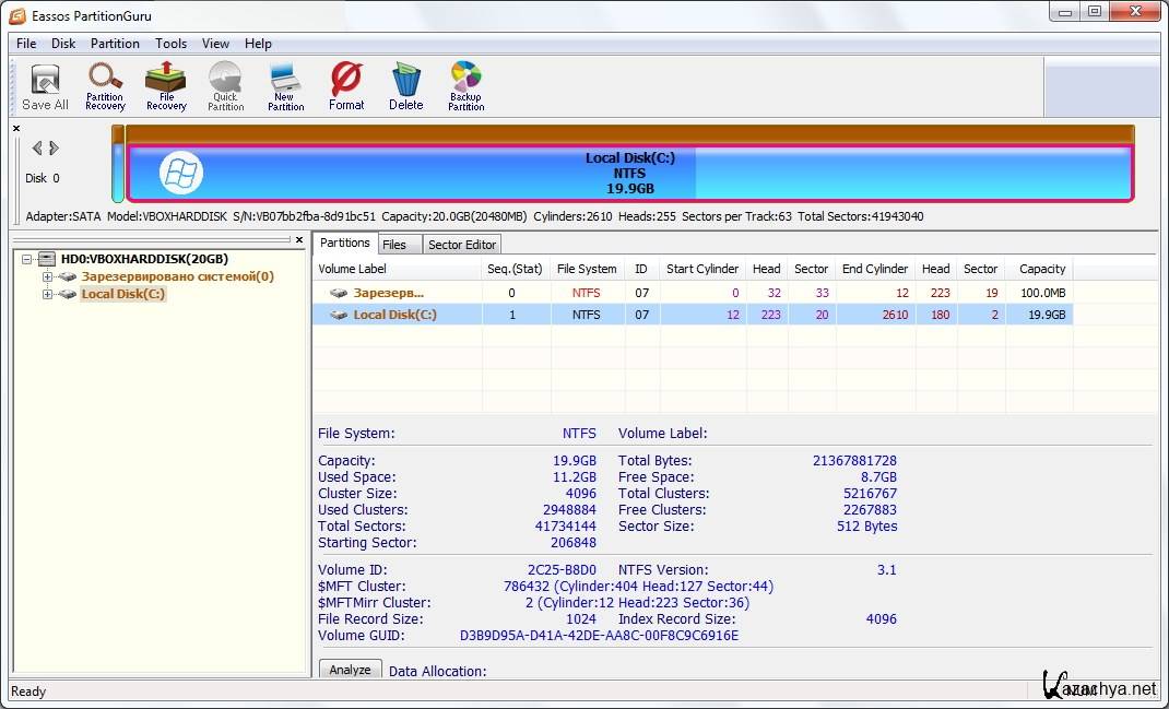 Eassos PartitionGuru - В дополнение к функциям управления разделами, такими, как создание, удаление, форматирование разделов, программа так же обеспечивает более мощные функции, такие, как восстановление удаленных файлов и разделов, клонирование разделов, клонирование дисков и т.д.