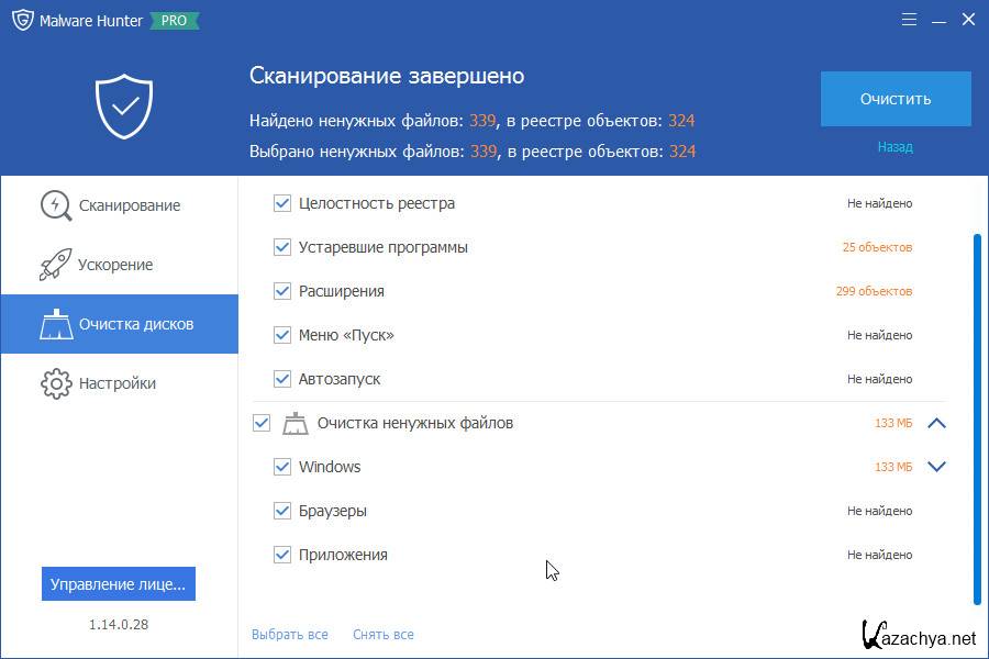 Кроме защиты, Malware Hunter PRO умеет проводить оптимизацию системы, для того, чтобы она работала быстрее. Так же в программе доступен инструмент очистки дисков от мусора.