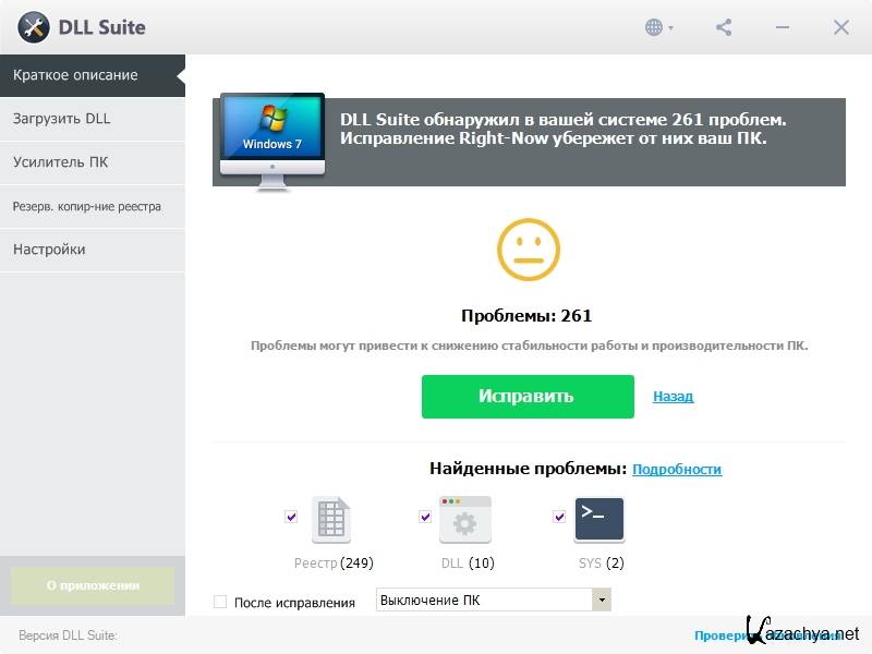 DLL Care - программа позволяет поддерживать в актуальном состоянии весь набор необходимых динамических библиотек DLL в системах Windows. Благодаря встроенному инструментарию, приложение может автоматически скачивать из сети интернет и устанавливать в систему отсутствующие и поврежденные файлы библиотек. Помимо этого, с помощью DLL Suite можно восстанавливать файлы EXE и SYS, которые были повреждены вредоносными программами или аппаратными сбоями. Возможно исправление ошибок, как в ручном, так и в автоматическом режиме.
