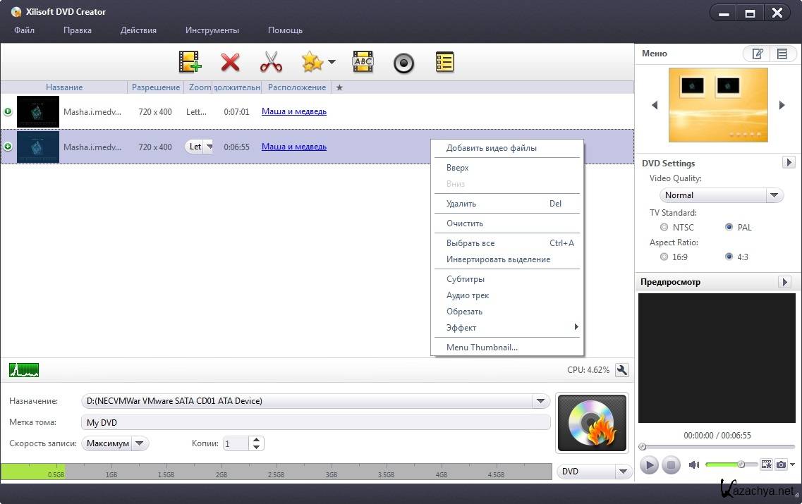 Xilisoft DVD Creator - это самый быстрый и простой способ конвертировать видео форматы. DVD Creator предлагает широкий выбор шаблонов DVD-меню для настройки записи, поддерживает и преобразует популярные форматы, добавляет фоновую музыку или изображения, для записи и персонализации ваших DVD, и многое другое.