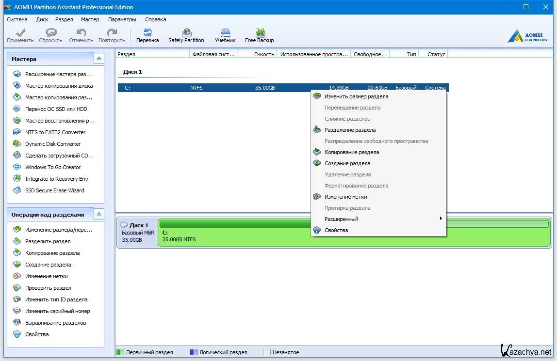 AOMEI Partition Assistant - мощная программа для работы с жёстким диском, администрирования разделов для ПК и рабочих станций. Программа ответит на такие вопросы: “Как изменить размер раздела или объединить разделы без потери данных? Как увеличить производительность компьютера?” AOMEI™ Partition Assistant® позволяет создавать, удалять, изменять размеры, производить форматирование разделов жесткого диска, объединять, разделять и перемещать их (или копировать), в том числе на другой жесткий диск или SSD-диск.