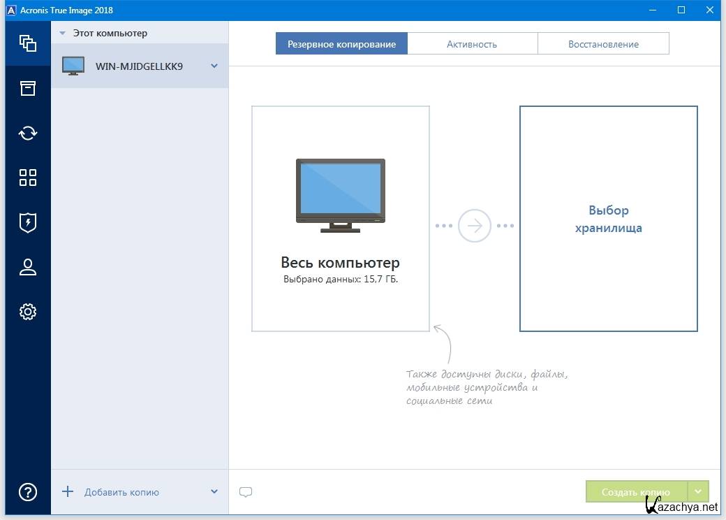 • Резервное копирование всего компьютера — новый тип резервного копирования позволяет защитить сразу все данные на компьютере. В случае аварии вы сможете восстановить не только все свои документы, фотографии и другие файлы, но и систему Windows вместе с приложениями.