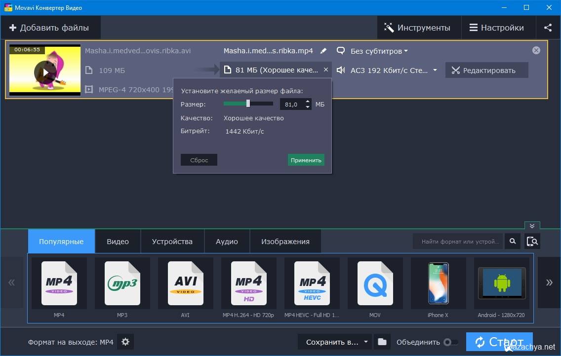 · Для обработки видео конвертер Movavi использует новейшие кодеки, что дает превосходное качество и минимум потерь.
