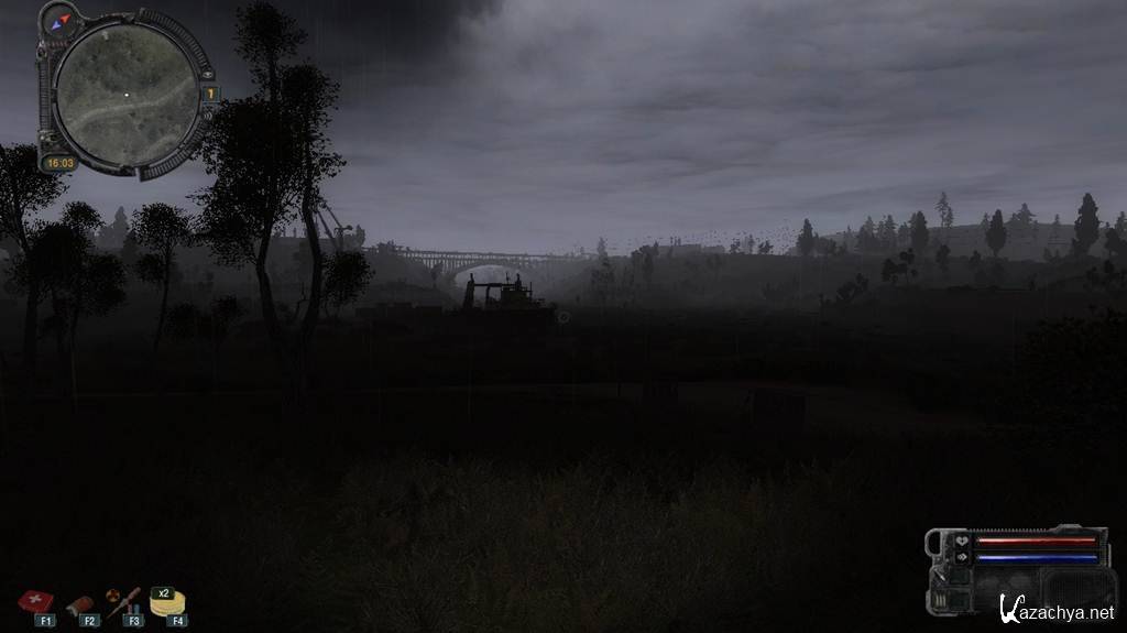 постоянное пасмурное небо, гроза или идет дождь. Изменен амбиент,
