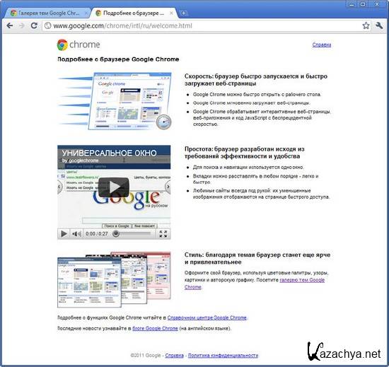 Помимо стандартных функций, присущих современному браузеру, имеется даже специфическая возможность, как осуществление покупок заинтересовавших вас товаров и проведения банковских операций с помощью инструментов Google Chrome. Хорошим отличием от прочих программ подобных этому есть скорость его работы. Это касается как скорости загрузки самой программы при старте браузера, так и скорости работы в сети интернет. Причём браузер Chrome от Google способен быстро открывать как стандартные сайты, так и имеющие сложные веб-приложения.Иным заметным преимуществом этой программы является её простота. Хром имеет очень простой и интуитивно понятный интерфейс. Механизм группировки вкладок пользователя позволяет их размещать самым удобнейшим образом. Так же для удобства существует устройство навигации и поиска сайтов в одной рабочей строке. Для этих же целей сделан и такой механизм, как окно быстрого поиска. Суть последней в группированиии часто открываемых страниц на одной области экрана в виде миниатюр с подписями. Она появляется при запуске программы. Не стоит уточнять, что Google Chrome отвечает всем стандартам безопасности, предъявляемым к современным браузерам. Это касается и защиты от вирусов, и функциям обновления безопасности, и многим другим.Для любителей лицевых украшений производитель предлагает не мало тем оформления программы, способных удовлетворить самый взыскательный вкус.