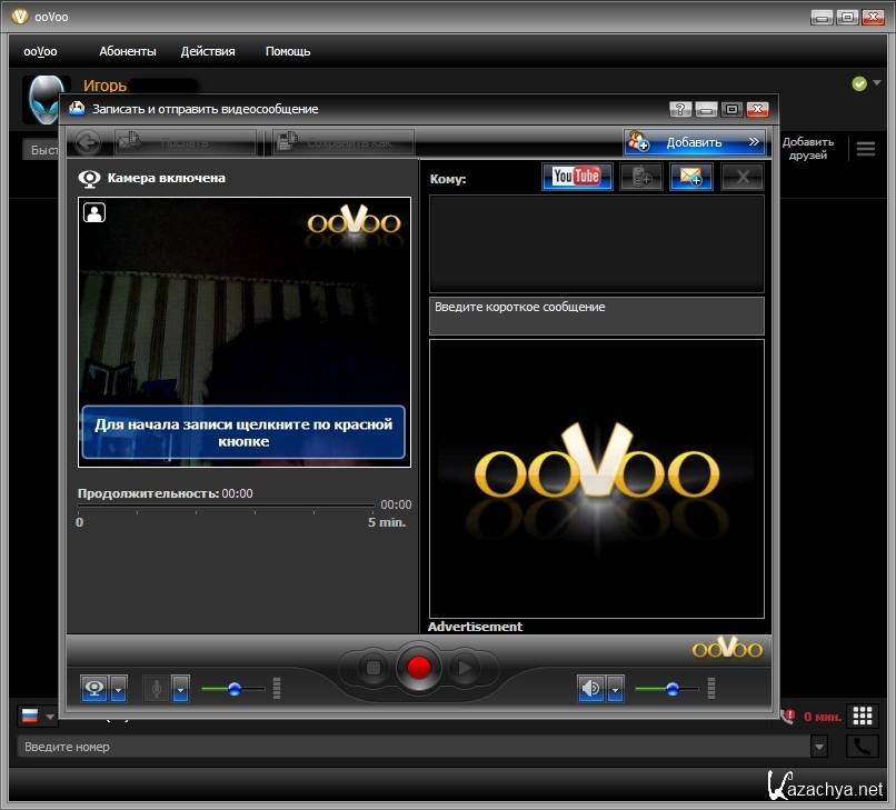 Отправка видеосообщений своим контактам в ooVoo или Facebook