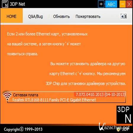 3DP Net программа автоматически определяет установленную сетевую карту и подбирает самый новый подходящий драйвер. Поддерживает режим без подключения к сети.