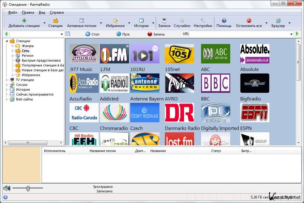 RarmaRadio Pro - программа для прослушивания и записи интернет-радиостанций. Обладает большим набором возможностей, обеспечивая комфортное прослушивание радиостанций и удобную запись транслируемых данных. Программа содержит множество станций рассортированных на группы в зависимости от жанра музыки, битрейта, сети и региона, имеет функцию поиска станций, автоматически скачивает из Интернета информацию о проигрываемых песнях, включая альбомную графику, и поддерживает подключение плагинов медиаплеера Winamp.