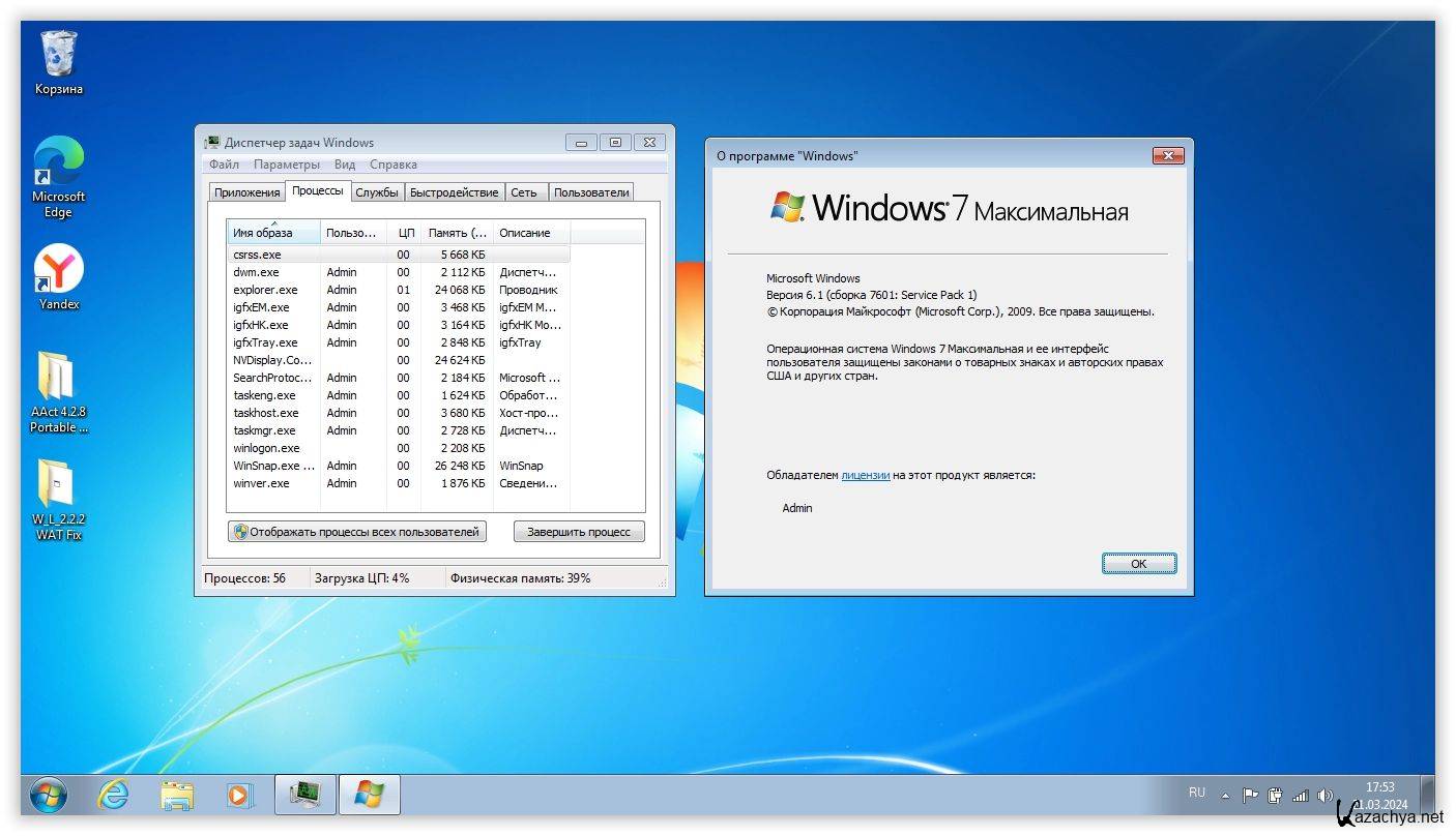 Обновленный в марте 2024 года образ Windows 7 Ultimate. Интегрированы системные библиотеки для корректной работы современных приложений и игр. Использован оригинальный загрузчик, благодаря которому Windows 7 можно установить на любой компьютер, процессор которого поддерживает семерку.