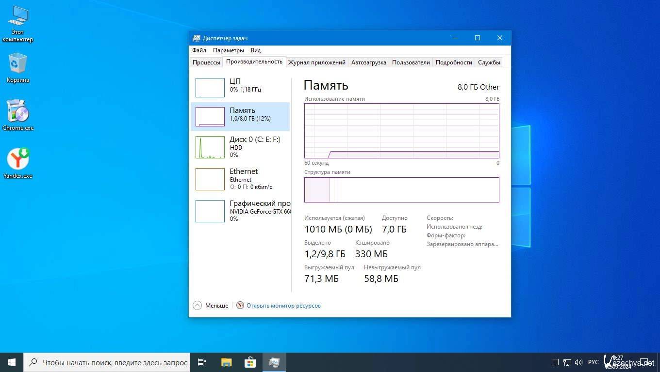 - 32/64-разрядный процессор с тактовой частотой 1 гигагерц (ГГц) или выше;