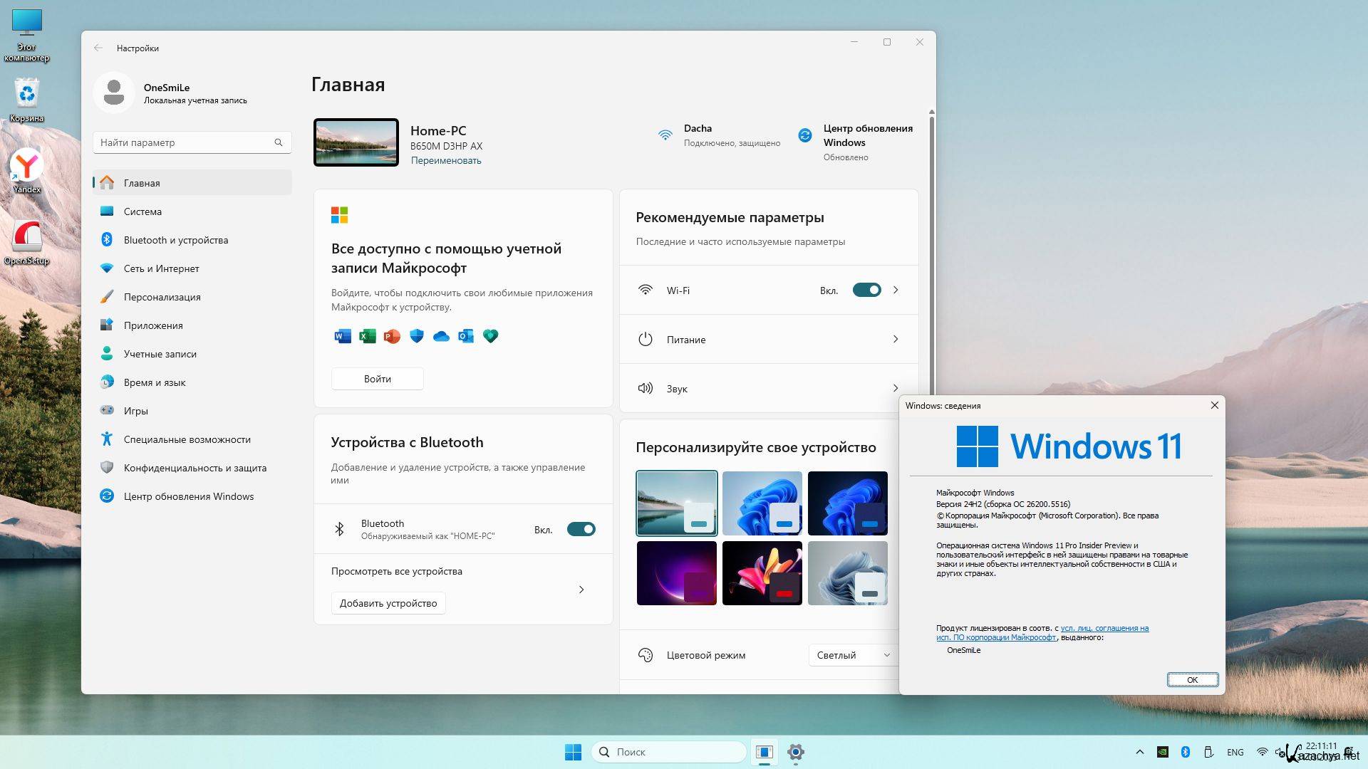 Скачать: Windows 11 Pro 24H2 Build 26200.5516 by OneSmiLe (RUS/2025)