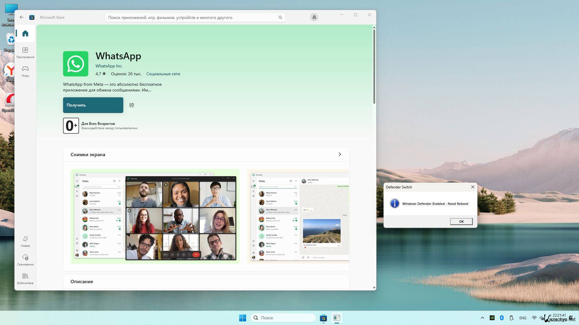 Сборка на основе инсайдерского образа Windows 11 24H2, с обновлениями на конец марта 2025 года. Полностью вырезаны весь плиточный хлам и телеметрия. Защитник Windows по умолчанию выключен, можно включить с помощью ярлыка в меню пуск (результат после перезагрузки).