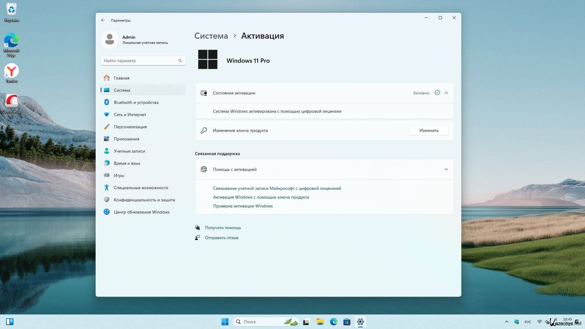 • система активируется автоматически (HWID - цифровая лицензия) при подключении к интернету.