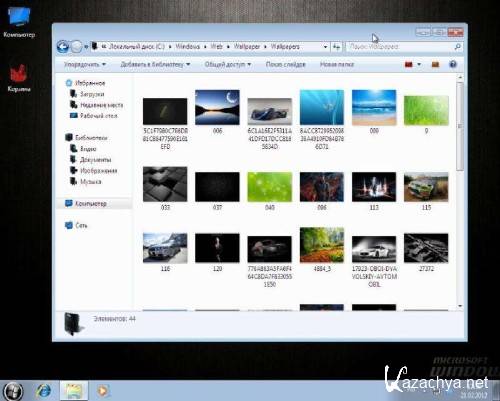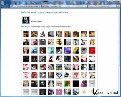 Обои, несколько тем (ОС пропатчена для использовани не подписанных Тем), аватары пользователей, на рабочем столе