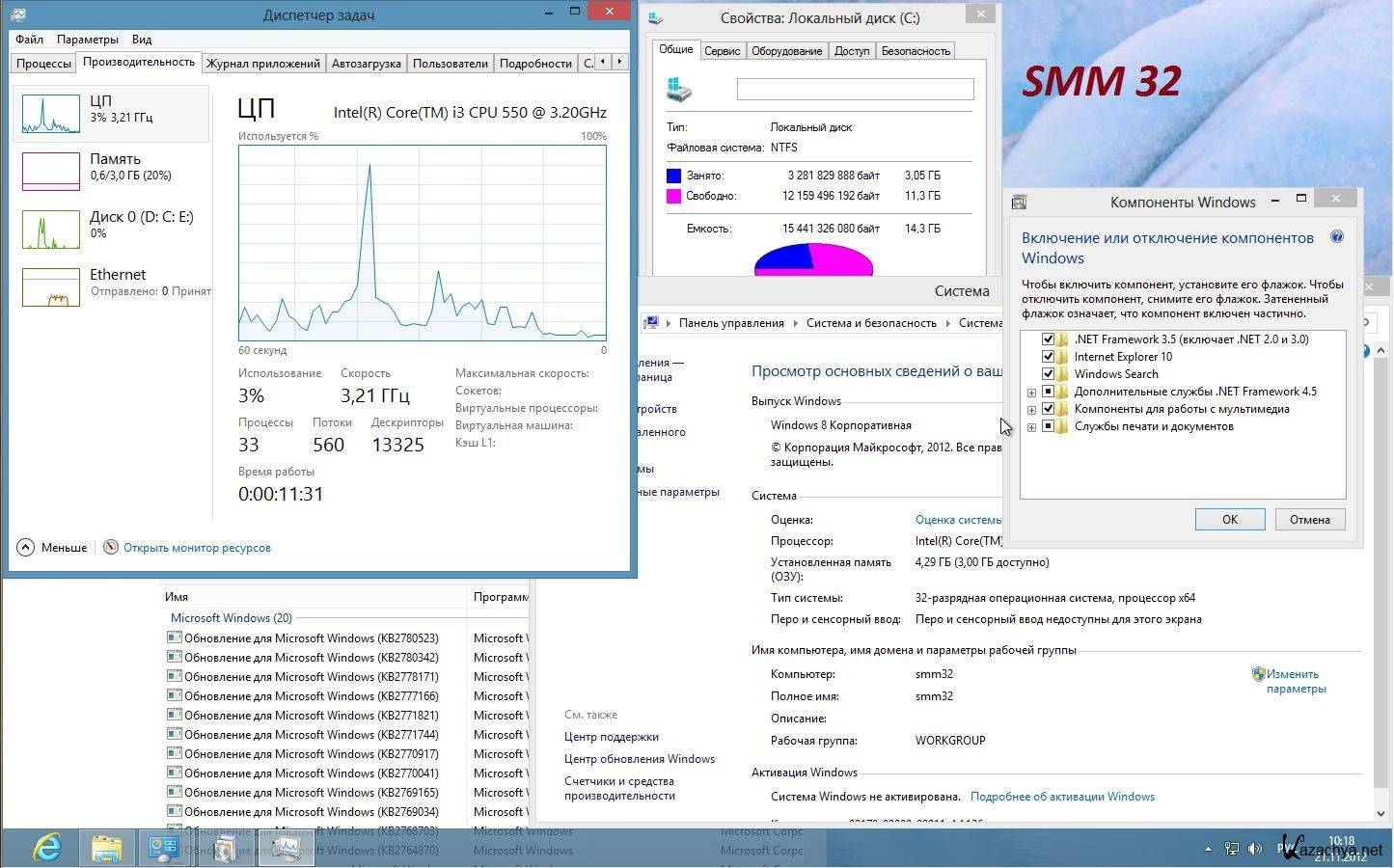 Дополнительно от SMM удалены почта и все приложения метро. Работают магазин, Изменение параметров компьютера и метро IE.