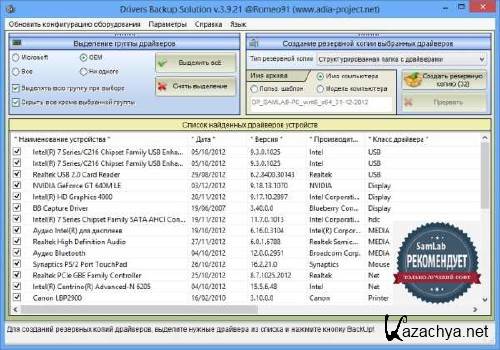 В сборник включены самые актуальные драйверы на дату релиза собранные лично SamLab. Не путать этот пакет с драйвер-паками Bashrat - эти драйверы новее и стабильнее.