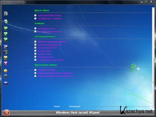 Пакет программ с "тихой" установкой, помещенных в оболочку установщика программ WPI, разделены на категории и весь процесс установки и регистрации проходит полностью в автоматическом режиме. Вам стоит только выбрать программы по надобности и запустить установку. Все программы в сборке, имеют краткое описание. Сборка представлена в ISO образе, который можно просто распаковать в удобное для вас место, например архиватором WinRAR. Также можно смонтировать в виртуальный дисковод и скопировать от туда в отдельную папку все файлы, папки