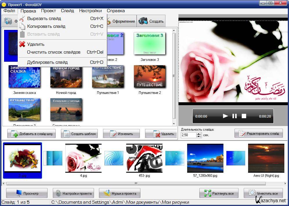 ФотоШОУ - это удобная программа для создания музыкальных слайд-шоу с красивыми эффектами переходов. Позволяет добавлять неограниченное число фотографий, вставлять подписи и титры, использовать темы оформления и многое другое. Подготовленные слайд-шоу можно сохранить в виде EXE-файла, скринсейвера или видео, в том числе full HD.