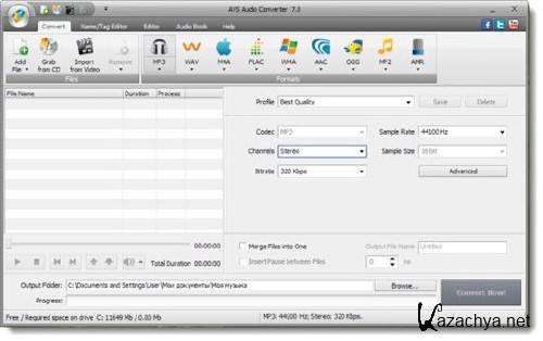 AVS Audio Converter - программа для преобразования аудио файлов из одного формата в другой. Поддерживает конвертирование WAV, OGG Vorbis, MP3, MP2, Microsoft ADPCM, WMA, VOX, AAC, M4A, AMR и других аудио форматов. До процесса преобразования программа определяет частоту, число каналов и другие параметры аудио файлов. Кроме этого, AVS Audio Converter позволяет задавать настройки параметров для MP3 и форматов OGG при преобразовании аудио-файлов и изменять информацию в тэгах. Дружественный и удобный интерфейс, расширенная поддержка форматов, которые предлагает AVS Audio Converter, превратят в удовольствие рутинную операцию конвертации аудио.