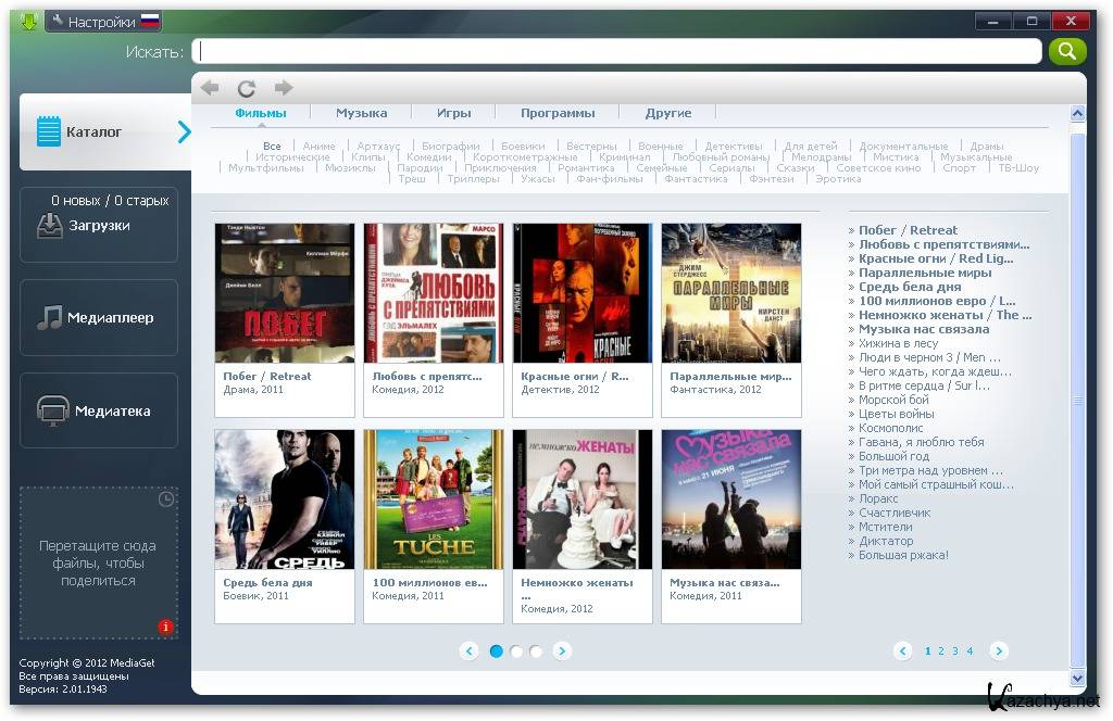 Встроенный мультиформатный медиаплеер MediaGet позволит слушать музыку и смотреть выбранные вами фильмы онлайн, не дожидаясь их предварительной загрузки. Просто нажмите «Плей».