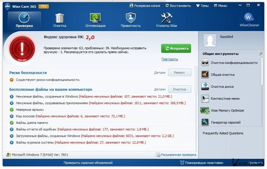 Скачать Wise Care 365 Pro 2.20 Build 172 Final Portable by SamDel ML/RUS