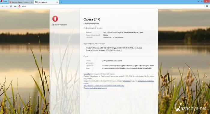 Повышенная защита от мошенничества браузера Опера оберегает вас от веб-сайтов, которые пытаются украсть вашу личную информацию. Opera работает на новом веб-движке Blink и javascript-движке V8 и основана на проекте Chromium.