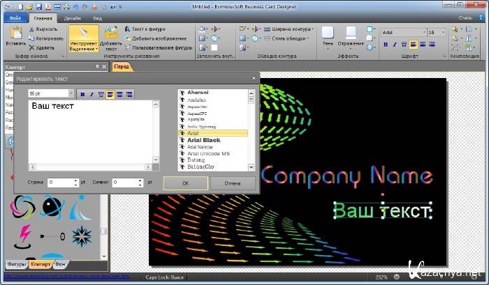 EximiousSoft Business Card Designer 5 программа для легкого и быстрого создания и печати визитных карт. Вся работа проходит при помощи "мастера", упрощающего процесс создания визитки. В программе достаточно мощные векторные инструменты рисования. Шаблоны карт разбиты по категориям для удобства пользователей.
