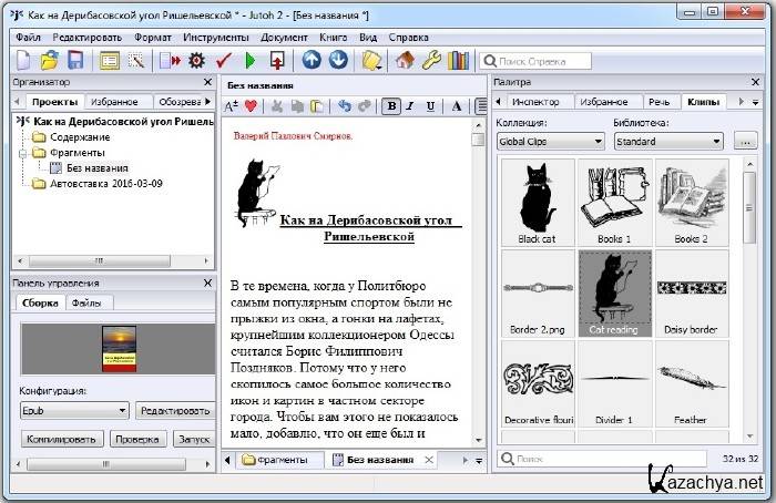 Anthemion Jutoh 2 оперативно создаcт для Вас электронные книги (ebooks) в цифровом виде в популярных форматах. Создайте свой проект за несколько секунд из существующих файлов, используя New Project Wizard, или создайте свою книгу "на пустом месте", используя встроенный стилизованный текстовый редактор. Выберите проект обложки книги из шаблонов Jutoh's, или создайте Ваш собственный кавер, благодаря встроенному кавер-редактору.