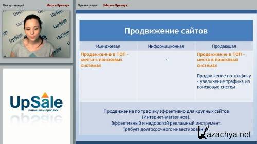 Описание: Цикл вебинаров от генерального директора компании Upsale Марии Кравчук. Содержит доклады и презентации на темы, связанные с развитием бизнеса и маркетинговыми инструментами, которые используются для того, чтобы повысить продажи.