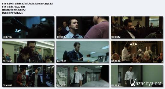 Бoйцовcкий клуб / Fight Сlub (1999) DVDRiр/700 Mb - Фильм Бойцовский клуб о человеке который нашел выход со своей скучной жизни повстречавшись с простым торговцем мылом. Терзаемый хронической бессоницей и отчаянно пытающийся вырваться из мучительно скучной жизни клерк встречает некоего Тайлера Дардена, харизматического торговца мылом с извращенной философией. Тайлер уверен, что самосовершенствование — удел слабых, а саморазрушение — единственное, ради чего стоит жить. Они совместно создают бойцовский клуб,в котором все больше и больше собирается людей. Драки происходят каждый вечер, клуб стает все известней но концовка этого фильма весьма поражающая, что из этого вышло смотрите сами....