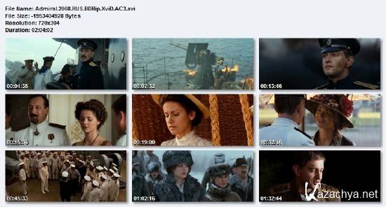 Aдмиралъ (2008) DVDRip/2.18 Gb - Фильм Адмиралъ повествует о жизни и любви выдающегося боевого офицера военно-морского флота, полярного исследователя, а потом ставшего адмиралом, верховного командующего России — Александра Васильевича Колчака и Анны Тимиревой. Действия разворачиваются во время 1916—1920 годов на фоне крушения Российской империи, двух революций и Гражданской войны...