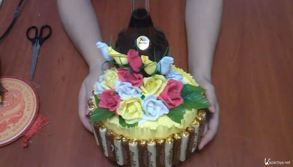 Название: Как украсить бутылку коньяка букетом из конфет (2015)